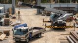 トラッククレーンを車検や搬入前に重量確認する必要性が伝わる現場イメージ トラッククレーン